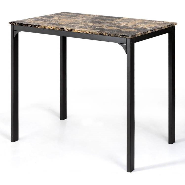 This Modern 3-Piece Dining Set Brown Faux Marble Table-Top and 2 Black Chairs Stools is designed for one or two people, perfect for kitchens or dining rooms with small space. Thanks to its space-saving design, once you are done using it, you can store the stools underneath the desk, improving space utilization. You can enjoy meals or have a glass of wine with your friend or a relative. The modern and contemporary style of this set adds additional chic to your home decoration. In addition, the set is made of high-quality materials that guarantee stability and durability for many years to come. If you are looking for a dining table set like this, do not hesitate to place an order! This dining table set consists of one table and two dining stools. Thanks to its marble-style top and black-finished legs this table will bring a modern touch to your room. Stools are also designed in a contemporary style. Edges and lines are straight and fluent, adding a chic and elegant look, making this set a perfect addition to any decoration. MDF materials and the top cover made from marble-style PVC ensure years of sturdy use, while the black-finished iron frame and legs provide additional stability. The cushion of the stool is filled with sponge and the cover is made of PU leather for a cool and comfortable seating experience. In addition, iron legs of stools are durable and can support a substantial amount of weight. This dining table set is designed for a maximum of two people, making it perfect for kitchens or apartments with small space. Thanks to its space-saving design, once you are done using it, you can store the stools underneath the desk. This dining table set is ideal for various places, such as kitchens or gardens and it can be used as a breakfast table or an afternoon tea table. In addition, thanks to its lightweight design you can easily move it from one room to another. Furthermore, this table set can also be used in commercial places such as restaurants, pubs, or other places of business. Simply follow the instructions provided in the package and you will be able to assemble in just a few minutes. The top surface, PU leather surfaces of stools and iron legs are smooth, making them extremely easy to clean, by simply wiping off the stains with a cloth or duster.